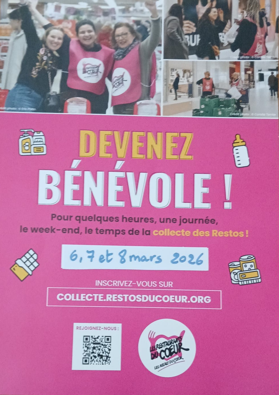 Devenez bénévole pour la grande collecte des Restos du Cœur – 6, 7 et 8 mars 2026