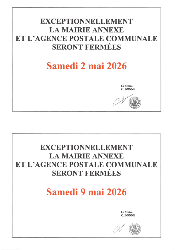 Exceptionnellement, la mairie annexe et l’agence postale communale seront fermées :